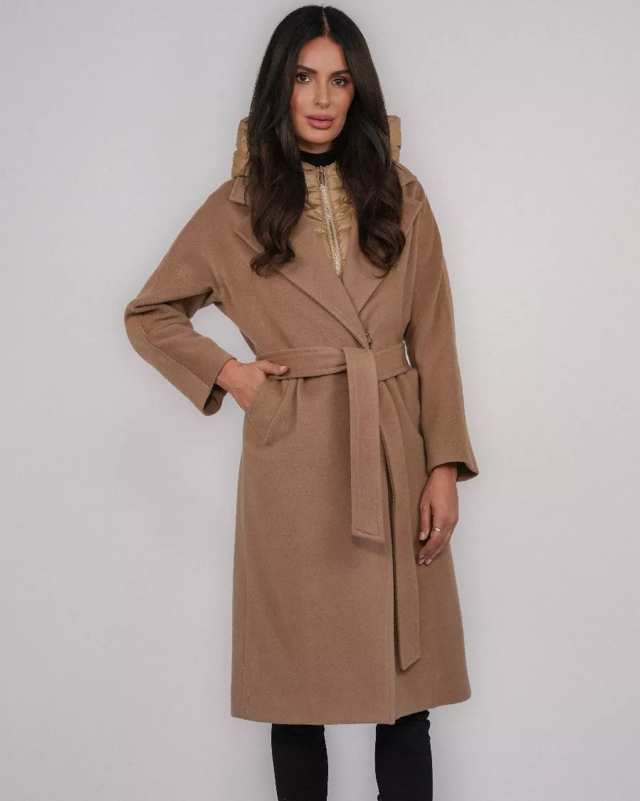 Wollmantel mit Kaschmir und herausnehmbarem Futter – Camel