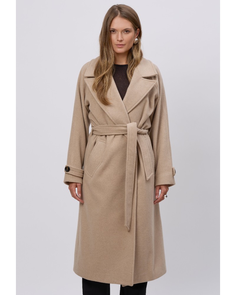Die Ärmel sind mit geknöpften Riemen verziert, die dem Mantel eine dezente Eleganz verleihen. Der Mantel verfügt außerdem über zwei praktische Seitentaschen.