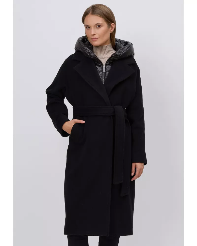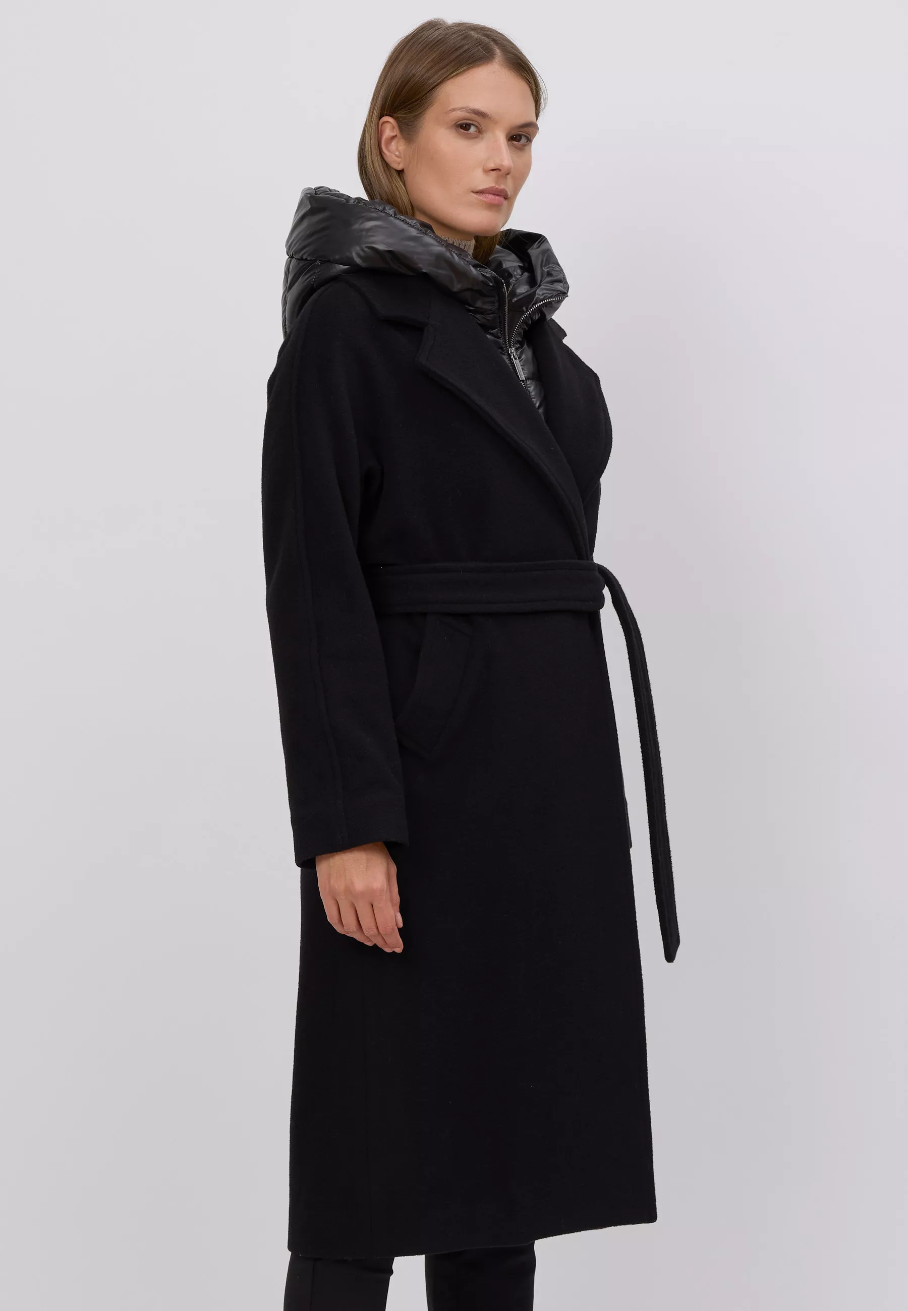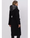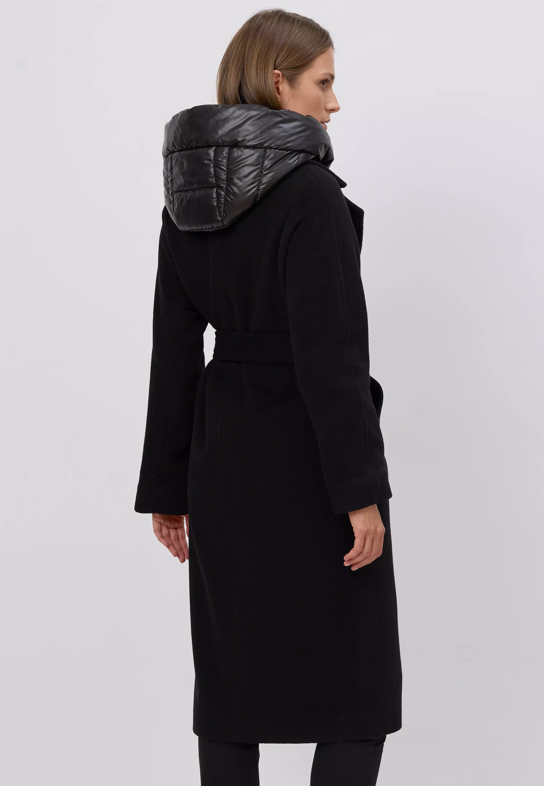 Schwarzer Wollmantel mit Kaschmir und abnehmbarem Kapuzenfutter