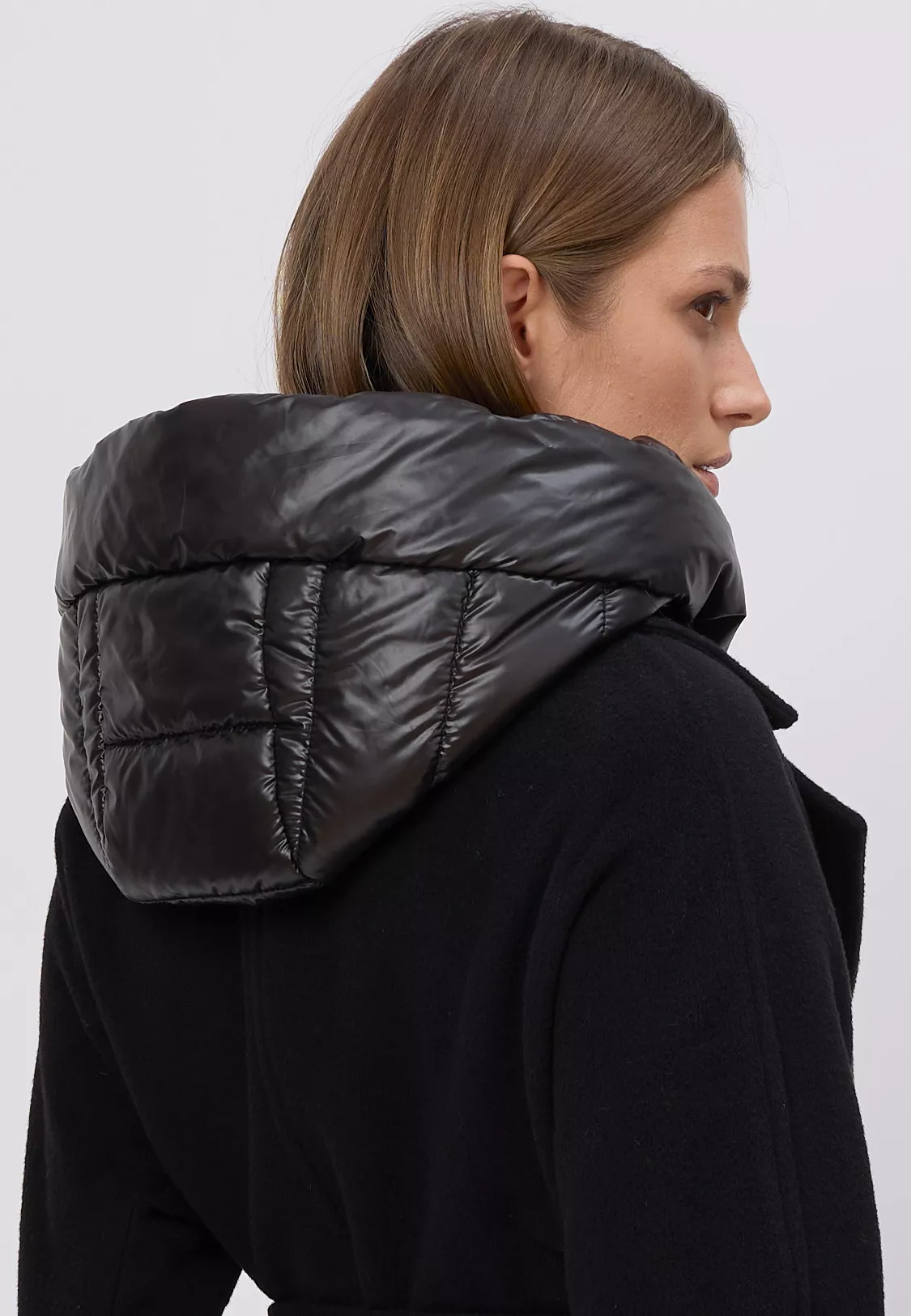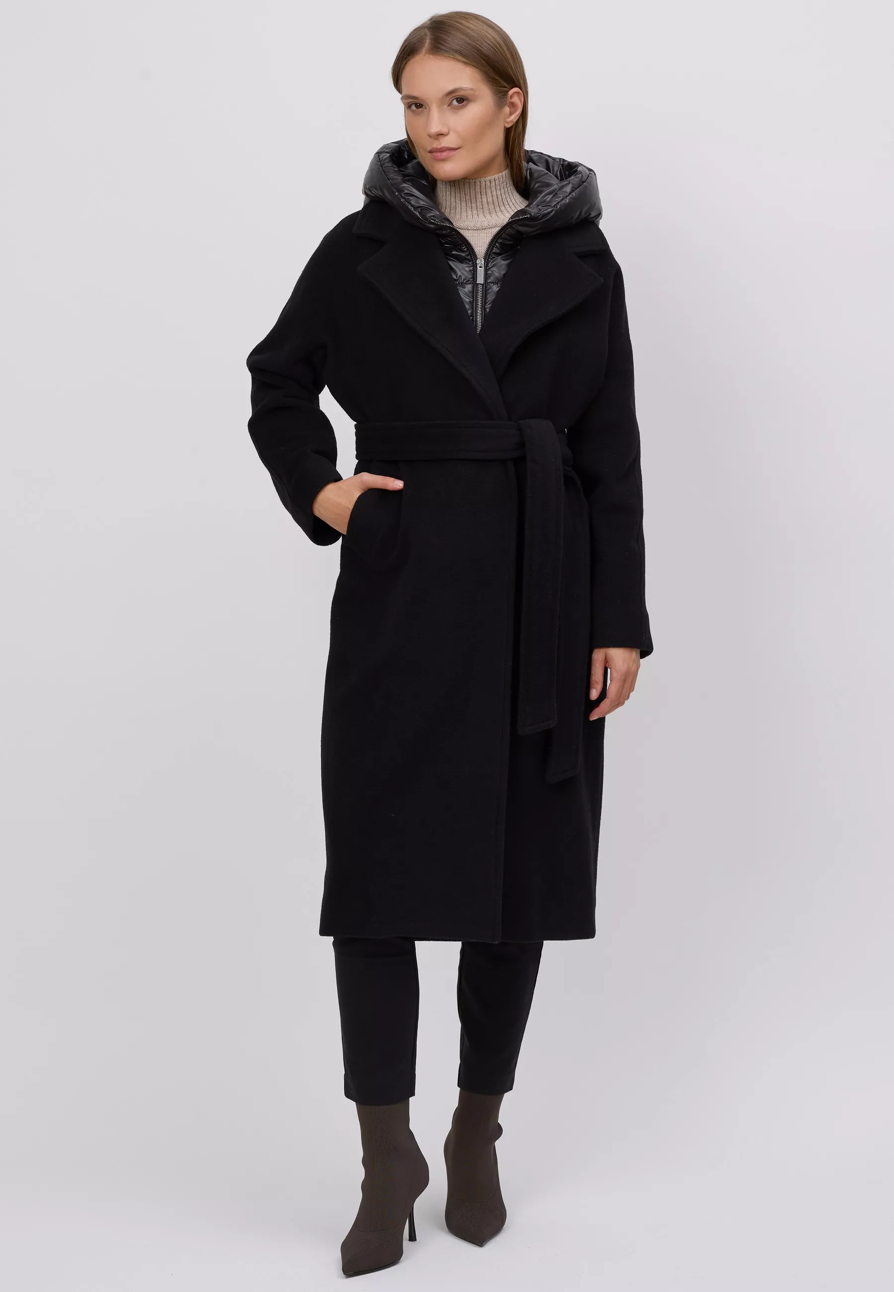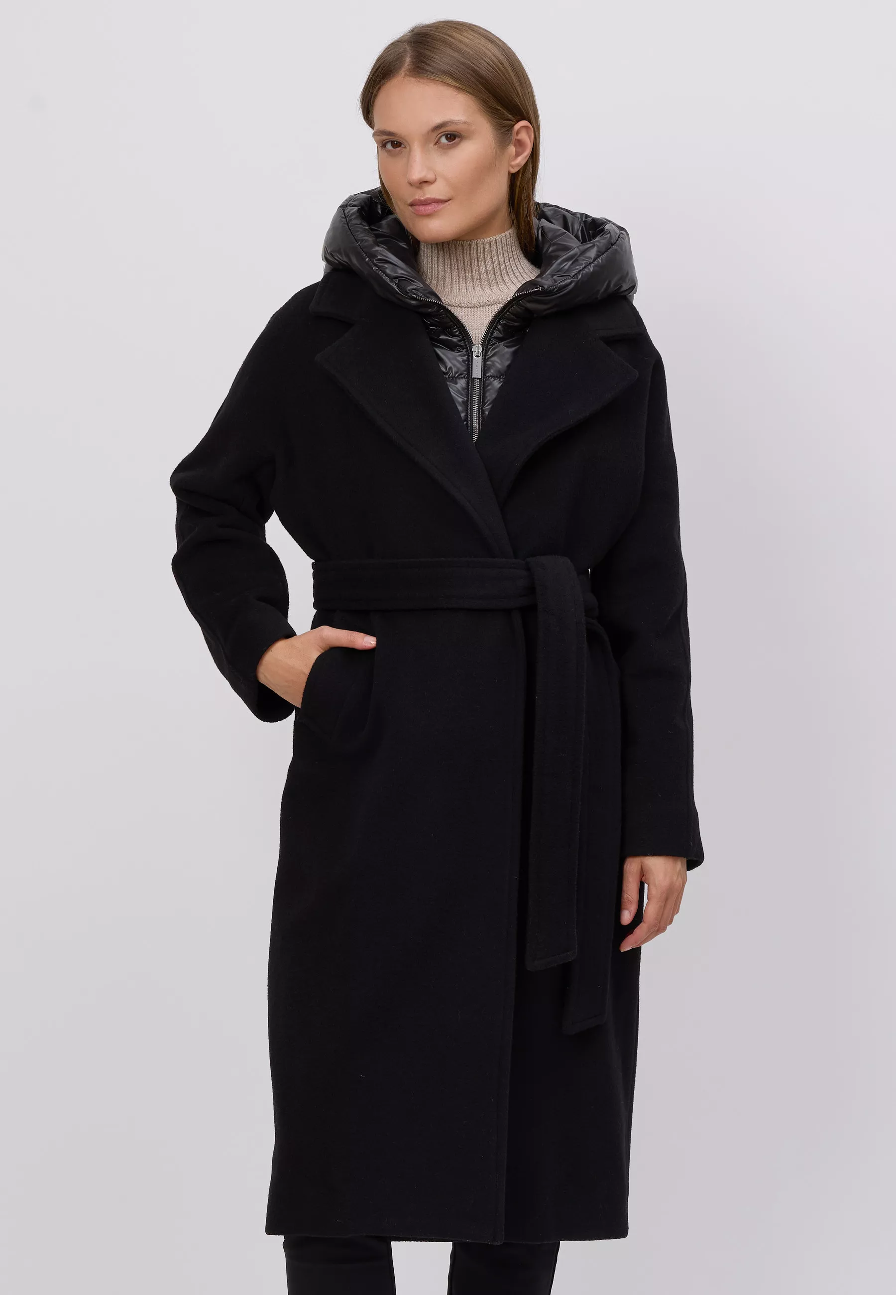 Schwarzer Wollmantel mit Kaschmir und abnehmbarem Kapuzenfutter