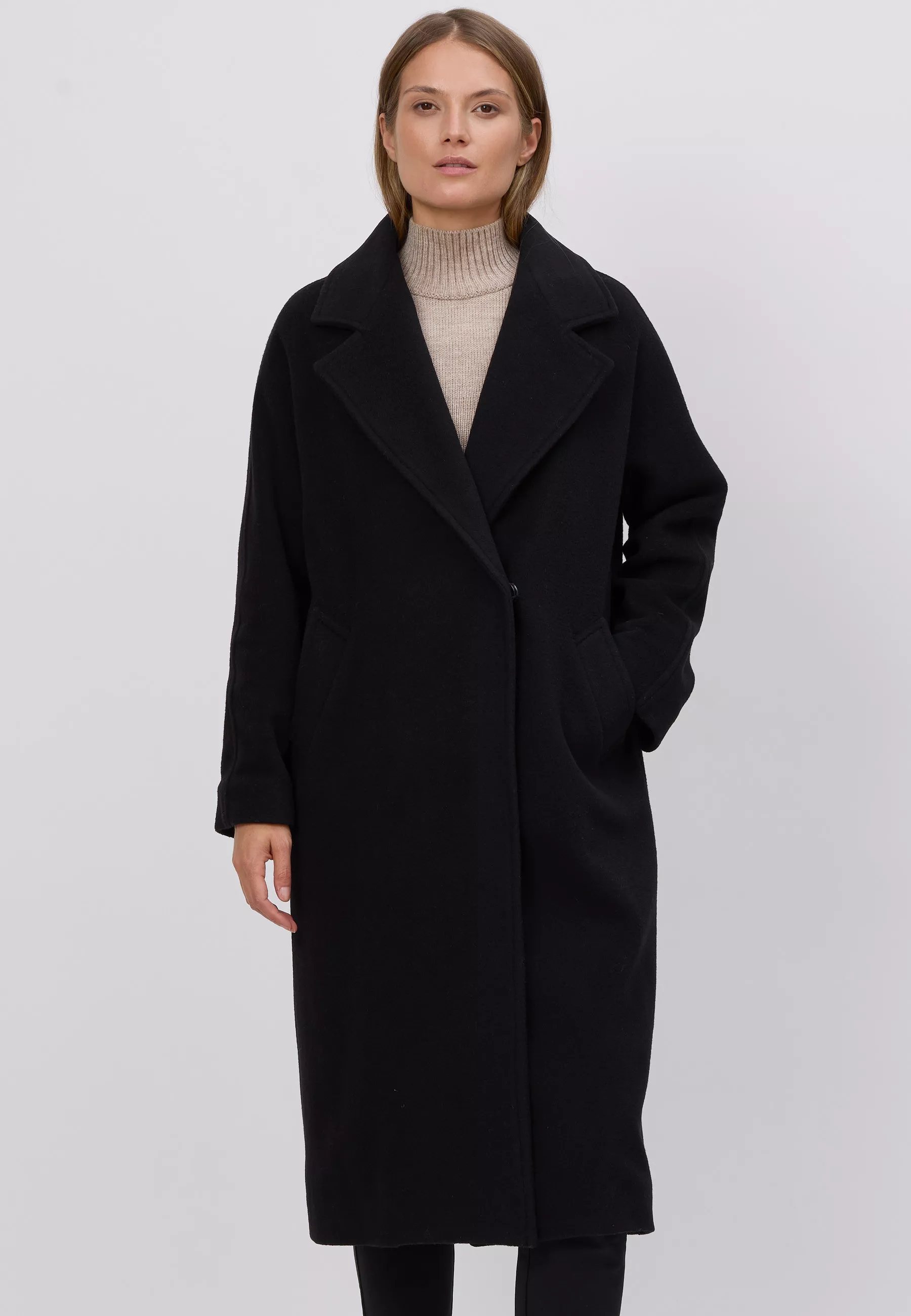 Dieser elegante schwarze Damenmantel ist aus hochwertiger Wolle und Kaschmir gefertigt. Seine zeitlose, lässige Passform sorgt für Komfort und Bewegungsfreiheit und besticht gleichzeitig durch einen stilvollen Look.