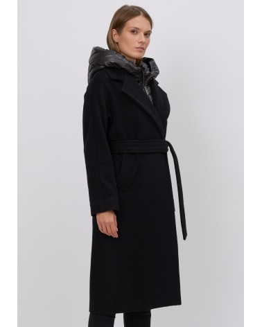 Schwarzer Wollmantel mit Kaschmir und abnehmbarem Kapuzenfutter