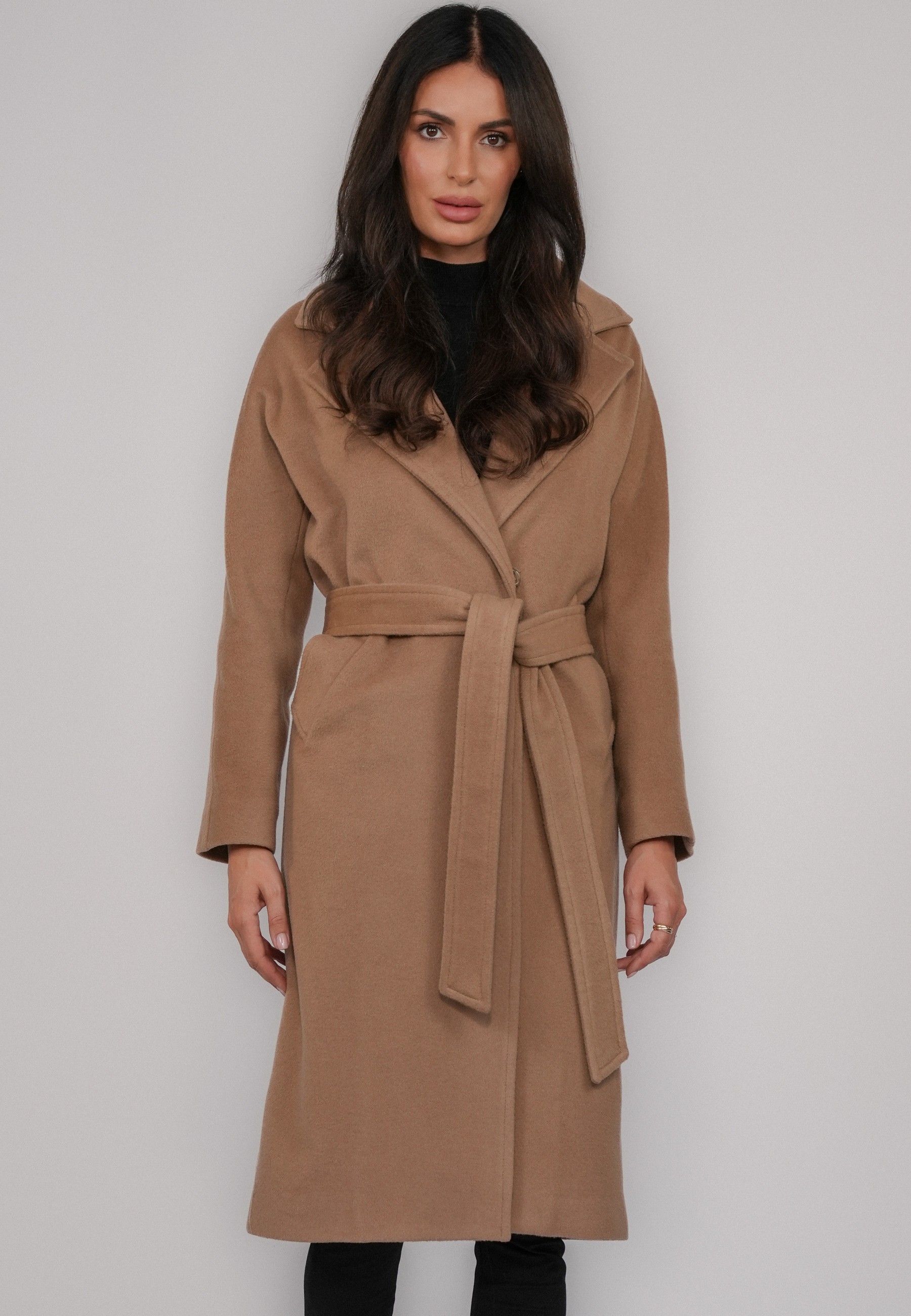 Wollmantel mit Kaschmir und herausnehmbarem Futter – Camel