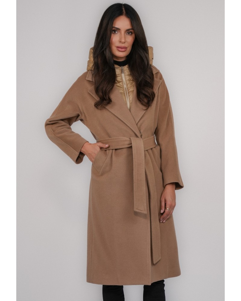 Wollmantel mit Kaschmir und herausnehmbarem Futter – Camel