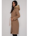 Der Mantel verfügt über ein herausnehmbares Kapuzenfutter mit Öko-Daunenfüllung und ist somit eine äußerst praktische Wahl für kältere Tage. Das Futter wird mit einem Reißverschluss geschlossen, der Mantel selbst mit dezenten Druckknöpfen. Der Mantel lässt sich mit einem separaten Bindegürtel in der Taille individuell an Ihre Figur anpassen – dieses Modell hat keine Gürtelschlaufen und bietet so vielfältige Styling-Optionen.