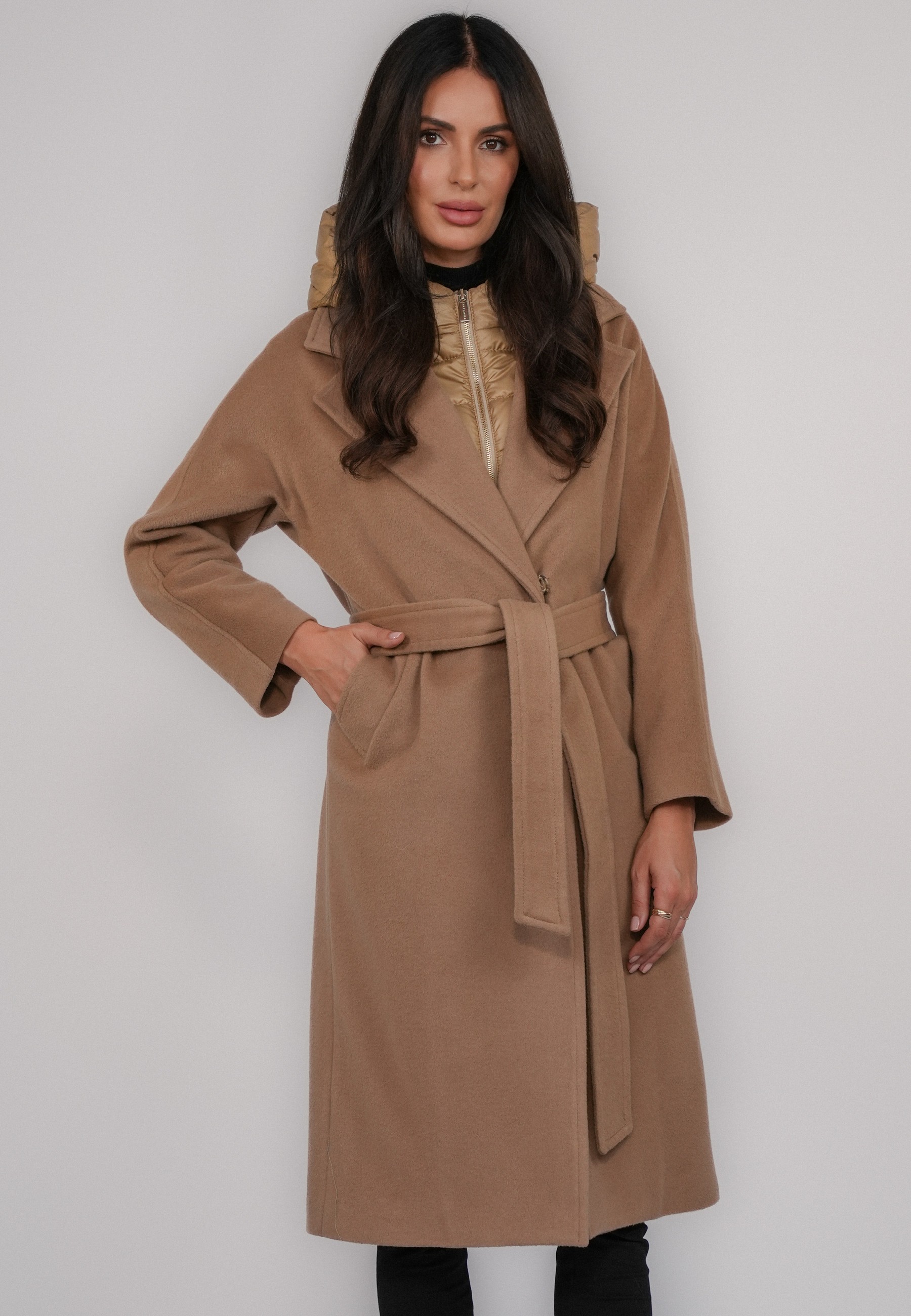 Wollmantel mit Kaschmir und herausnehmbarem Futter – Camel