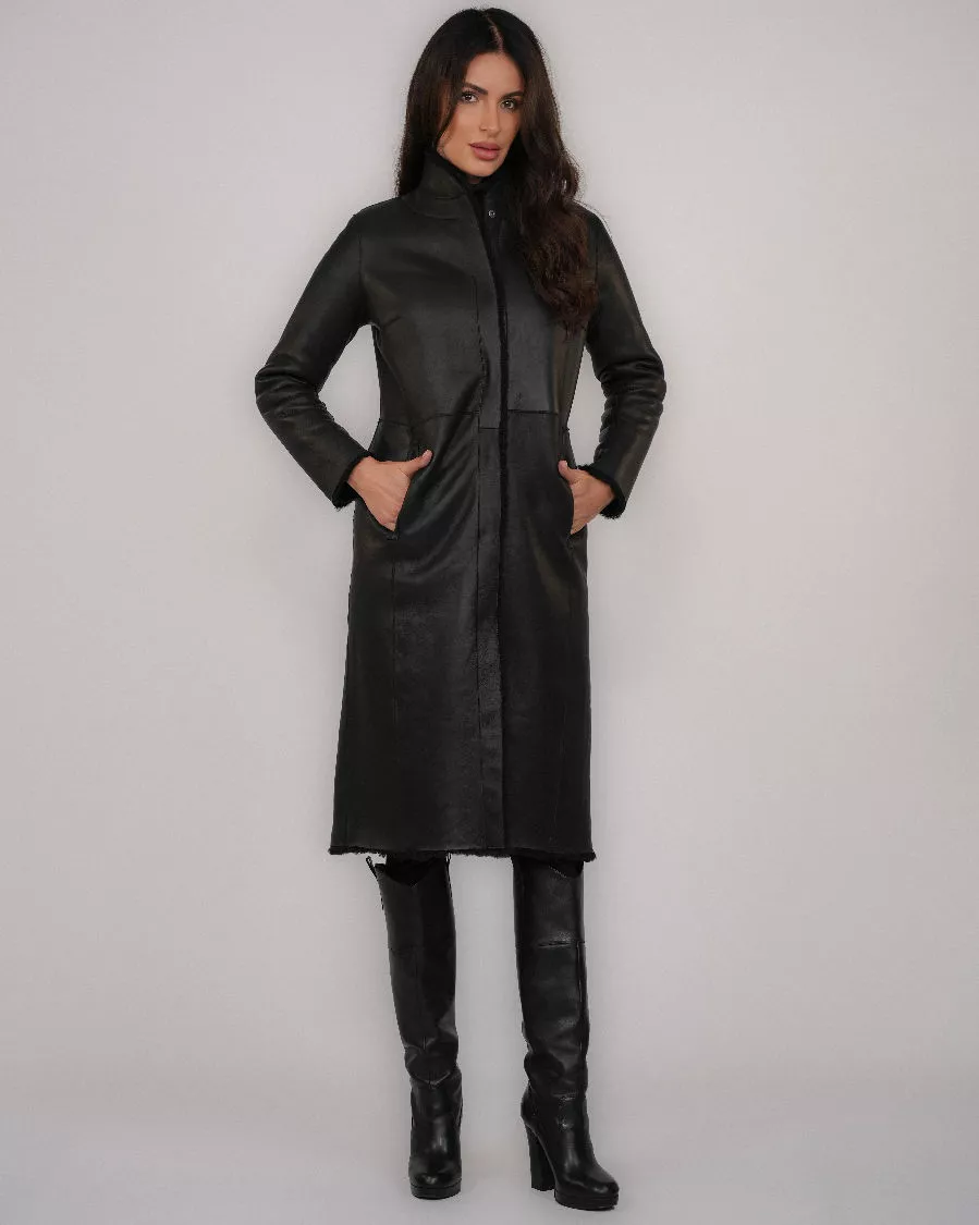 With a length of 110 cm, this sheepskin coat looks incredibly chic and provides thermal comfort even on the coldest days. It's an excellent choice for women who value natural materials, quality, and minimalist elegance.