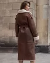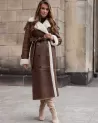 You can be sure that wearing a walnut long sheepskin coat with a white finish, you will arouse the interest of people around you. This coat is extremely stylish, which makes it eye-catching. Details such as black buttons or a belt tied at the waist play a significant role here, which are the perfect complement.