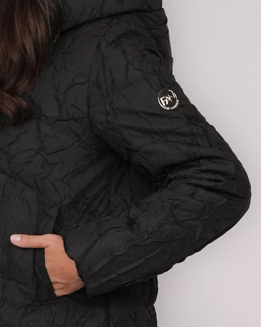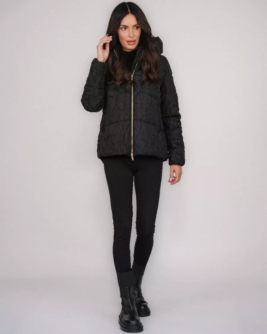 Black insulated down jacket with a hood – perfect for cold days