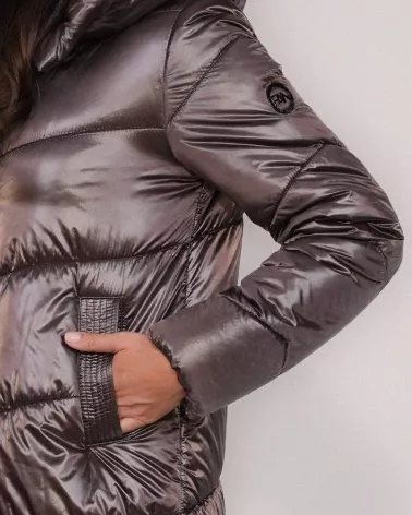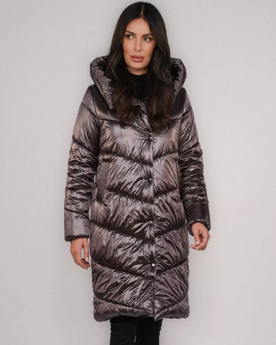 The spacious, warm hood and quilted design give the jacket a modern and feminine look, flattering the silhouette.