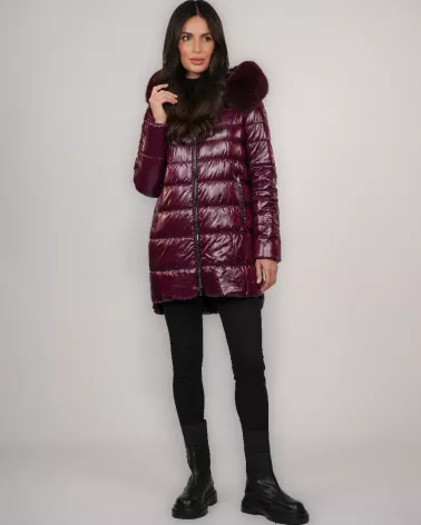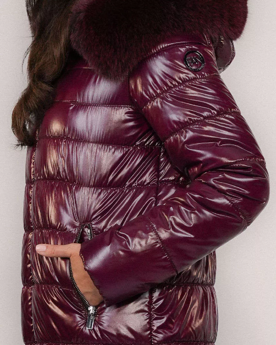 This model features a large hood trimmed with natural fox fur – the fur trim is detachable, allowing you to easily match the jacket to the occasion and style. It fastens with a full-length zipper and features two functional side pockets, both also with zippers.