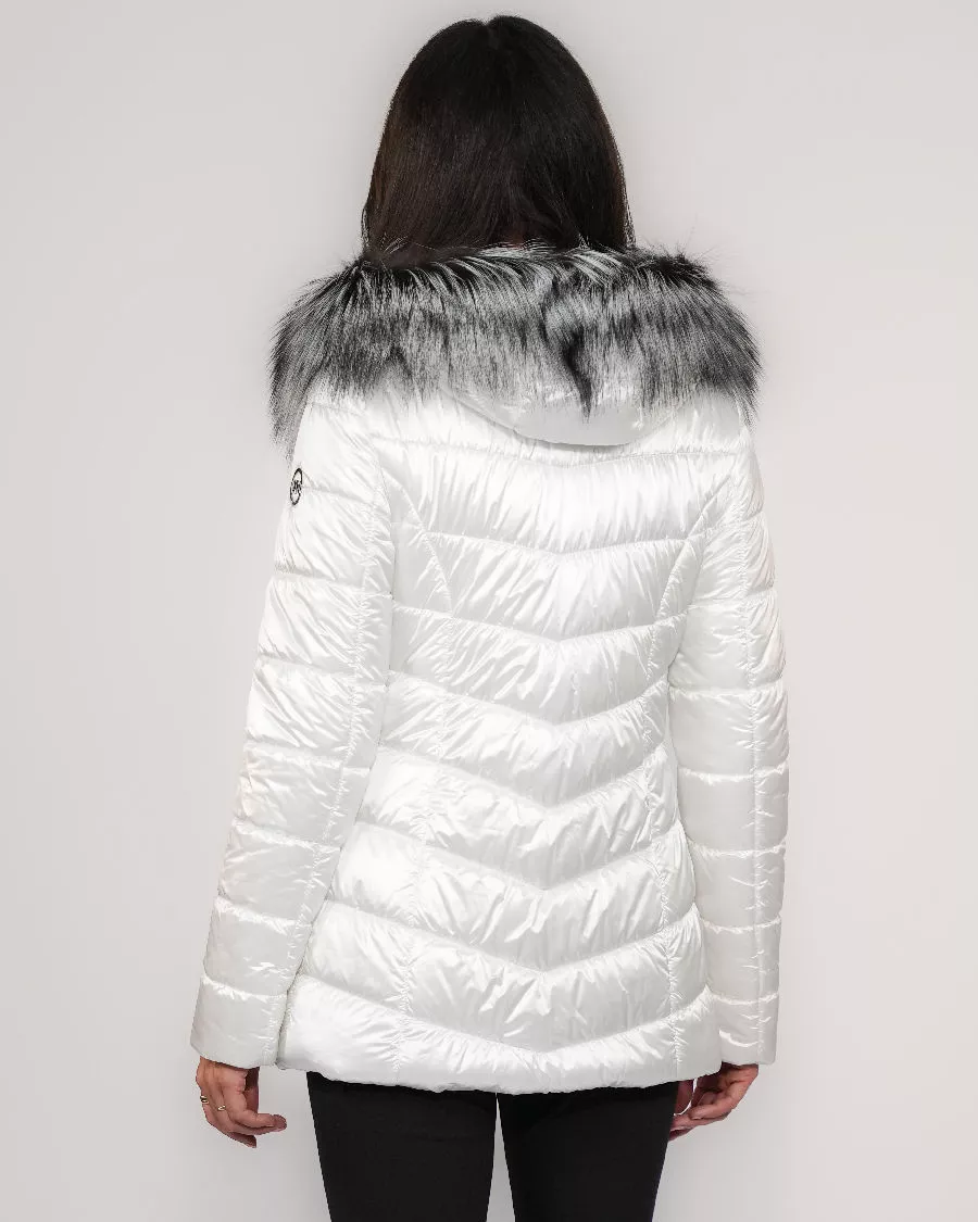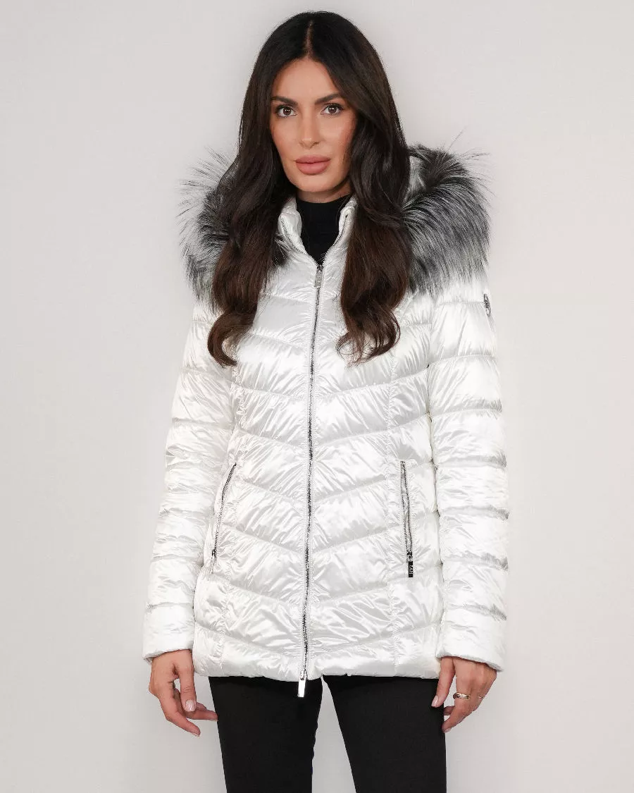 This elegant, fitted down jacket in snow-white is the perfect choice for cold days for women who value comfort and sophisticated style. The 75 cm length visually slims the silhouette, while the precise quilting accentuates feminine proportions.