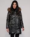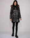 This stylish, long black down jacket is the perfect combination of elegance and functionality. Made of high-quality, 100% water-repellent polyester, it provides protection against moisture and wind while guaranteeing thermal comfort even on cold days.