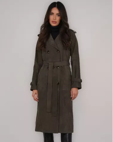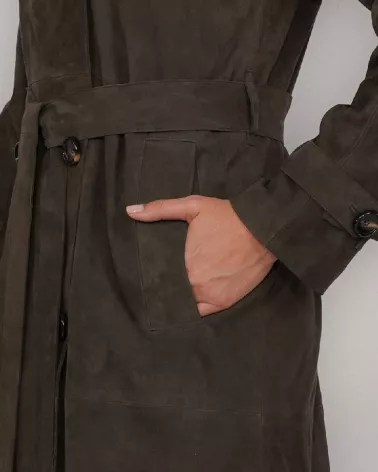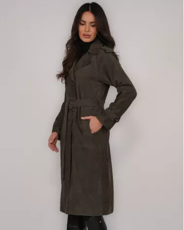 Suede Coat with Belt – Dark Olive