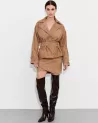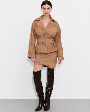 This jacket is the perfect blend of casual comfort and a feminine silhouette – thanks to its oversized cut, you can wear it casually or belted for a more fitted look. Subtle details like the straps at the cuffs and soft suede give the piece a unique character.