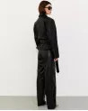 Oversized Black Leather Jacket with Belt – Modern Elegance