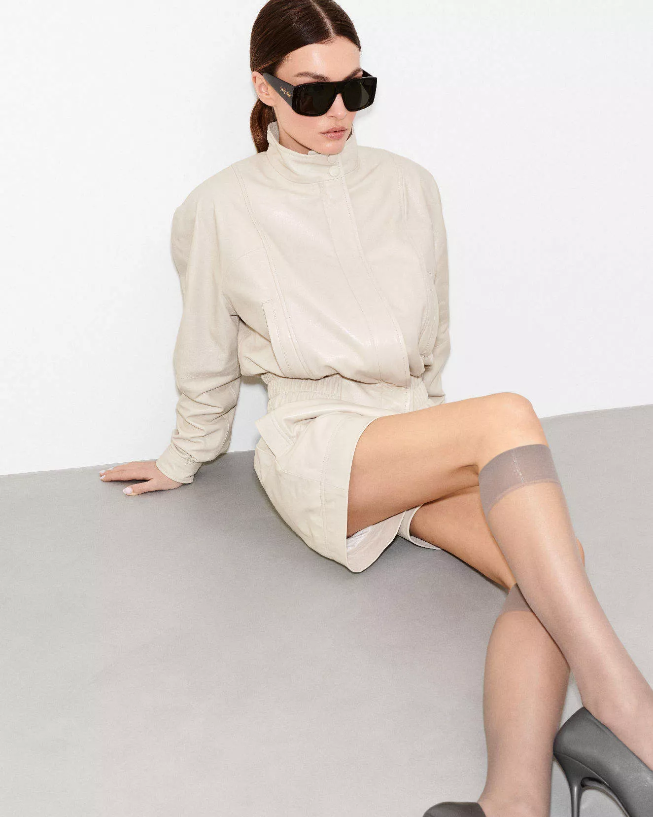 Ivory leather shorts