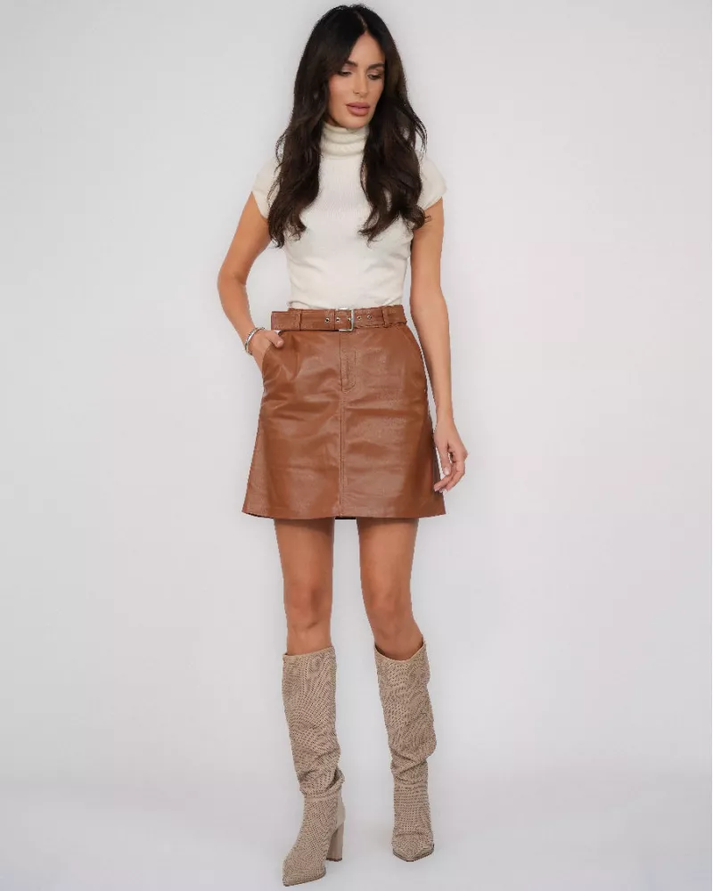 This skirt pairs perfectly with a lightweight turtleneck and boots, as well as a smart shirt and ankle boots – perfect for everyday wear, work, or an evening out.