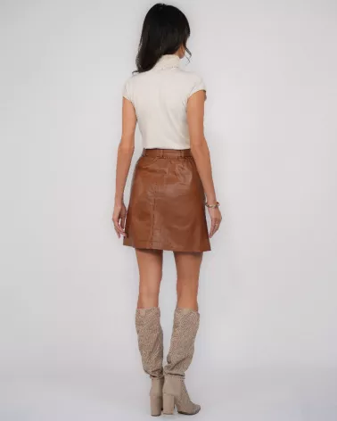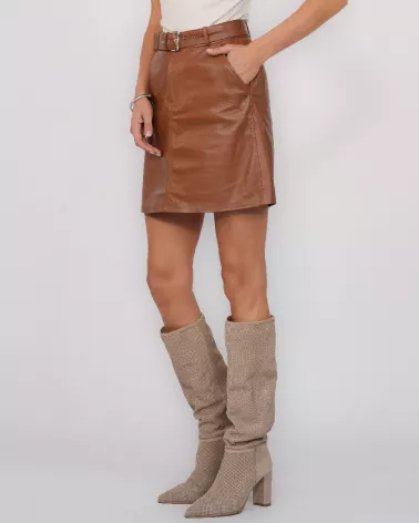This stylish and timeless whiskey leather skirt is the perfect choice for women who appreciate classic elegance with a modern twist. Crafted from 100% soft lambskin, it offers exceptional comfort and a perfect fit.