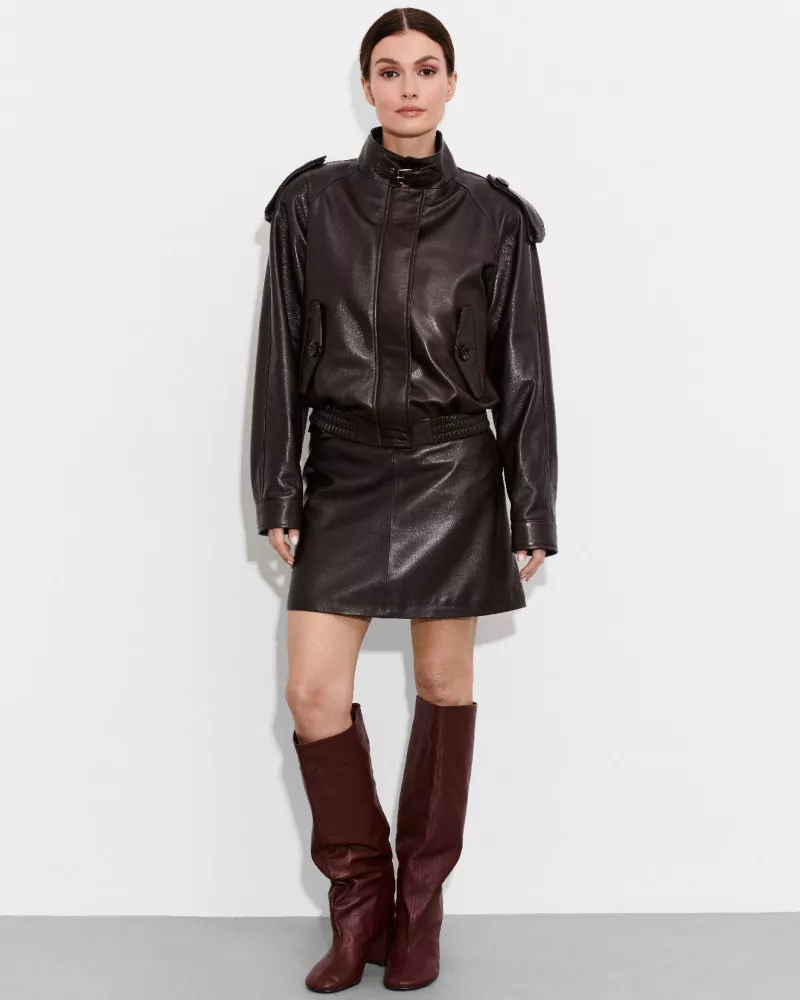 This stylish mini skirt made of high-quality lambskin is a perfect choice for women who value timeless elegance and a distinctive style. The classic brown color combined with refined details make this skirt a perfect complement to both everyday and more sophisticated outfits.