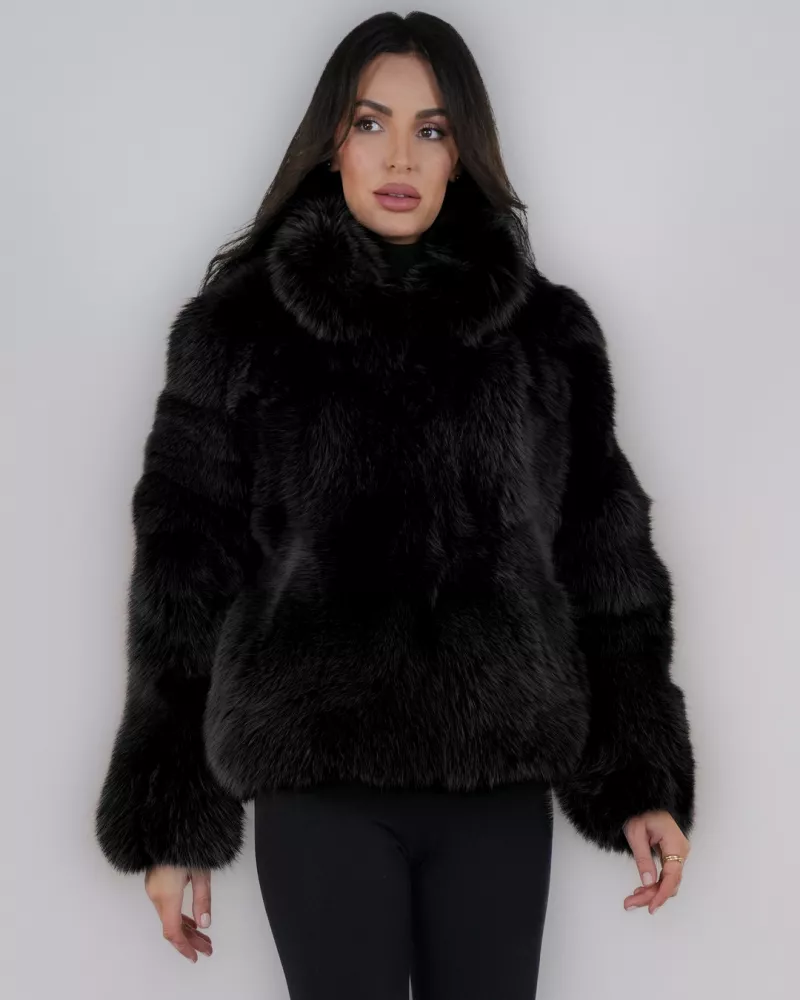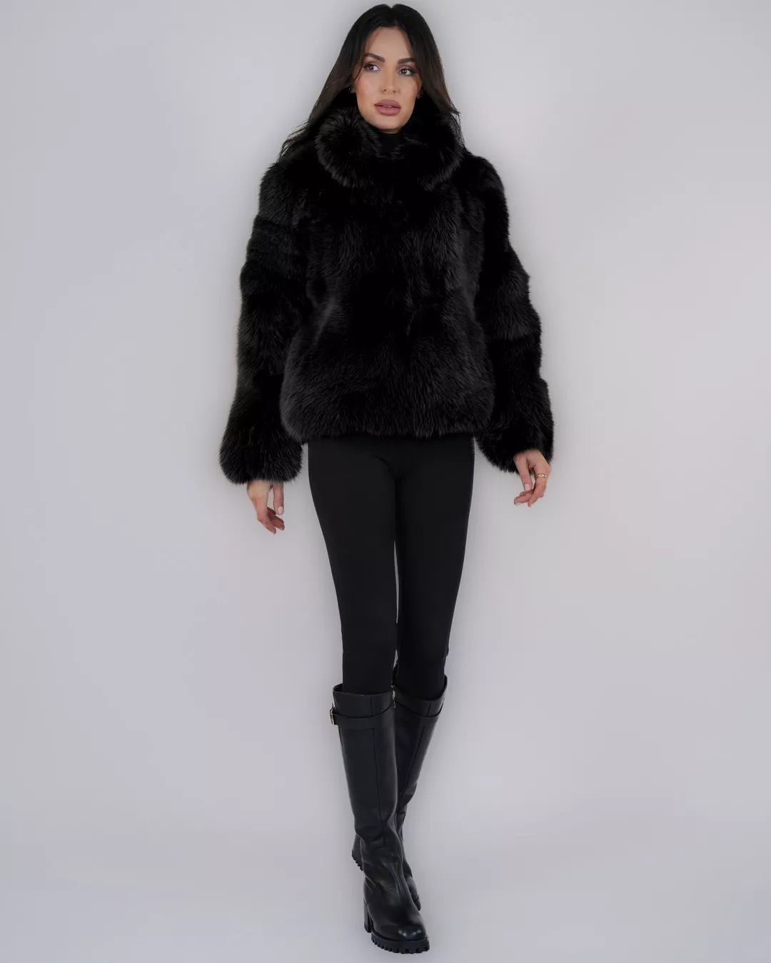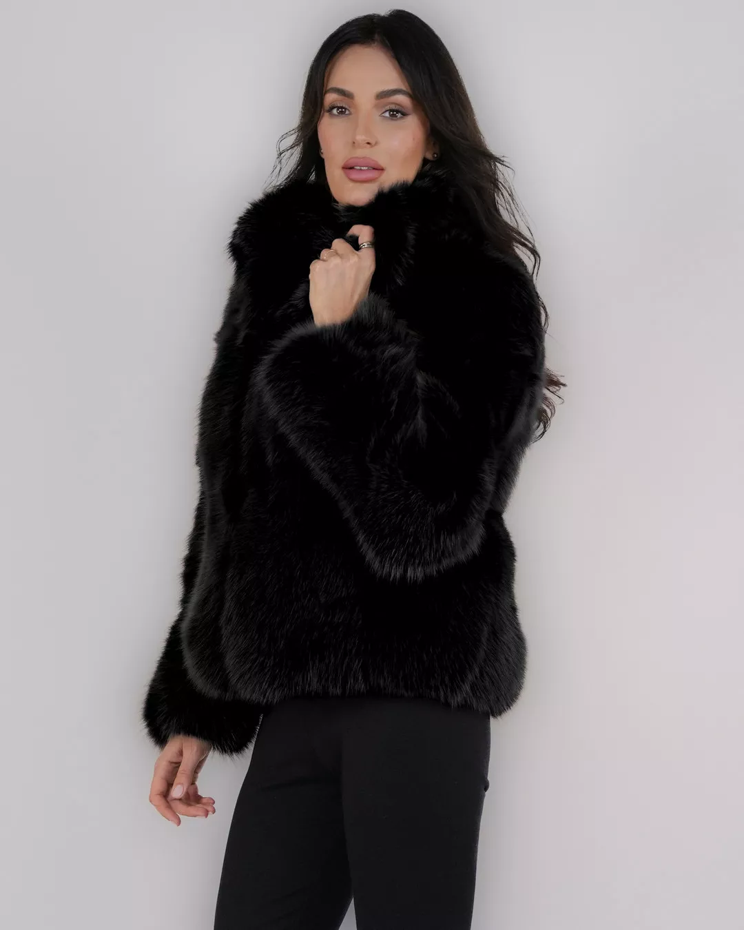 Ekskluzywne, krótkie futerko wykonane w 100% z naturalnego futra lisa to propozycja dla kobiet ceniących luksus, ponadczasową elegancję i najwyższą jakość wykonania. Model zachwyca miękkością, gęstością futra oraz subtelnym połyskiem, który pięknie podkreśla głębię czarnego koloru.