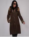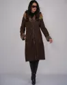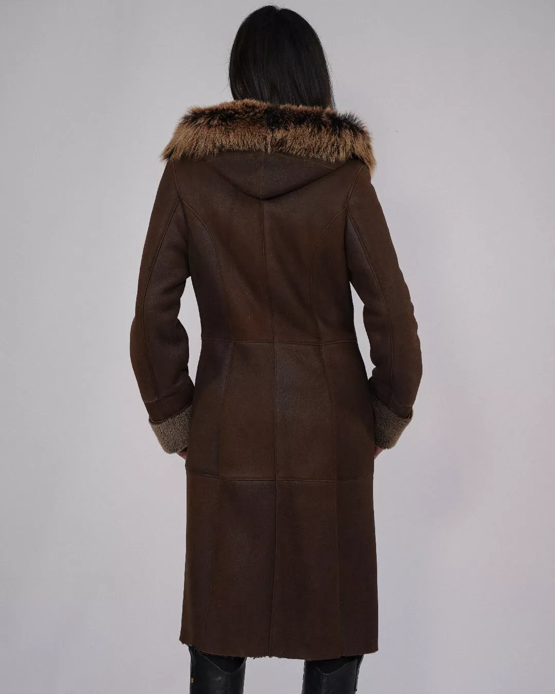 Elegancki i ponadczasowy kożuch damski wykonany w 100% z naturalnej skóry merino, która zapewnia doskonałą izolację termiczną, miękkość oraz komfort noszenia w chłodniejsze dni. Klasyczny fason o długości 105 cm subtelnie podkreśla sylwetkę, a jednocześnie gwarantuje ochronę przed zimnem.