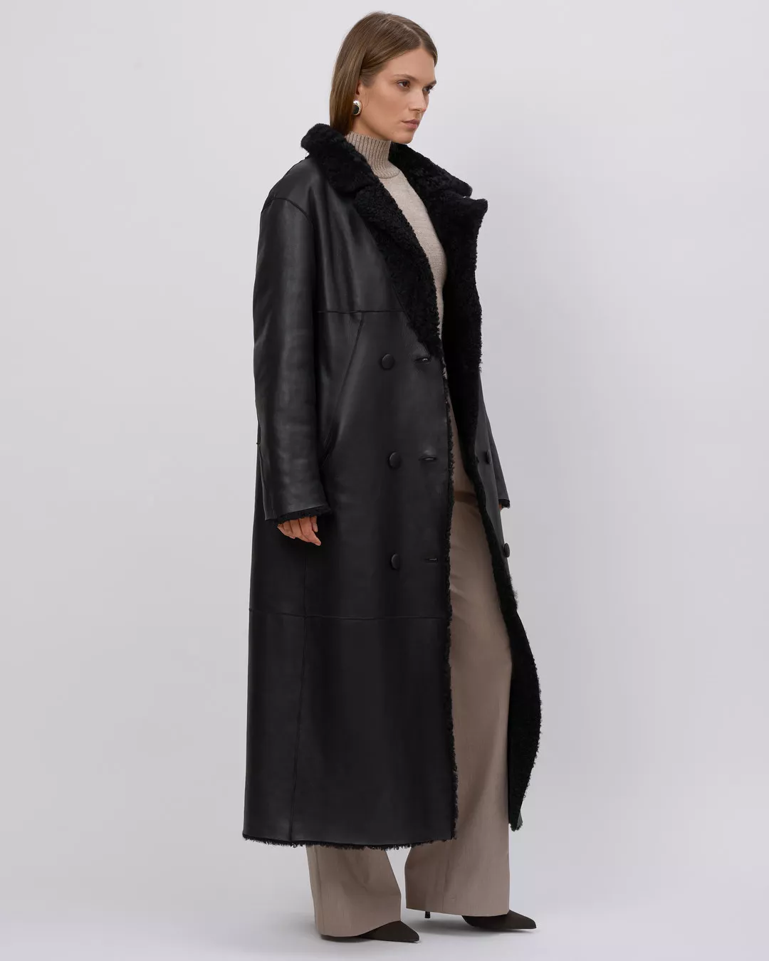 Elegancki, a zarazem niezwykle funkcjonalny kożuch wykonany w 100% z najwyższej jakości skóry merino. Dwustronny fason pozwala na noszenie zarówno strony z miękkim, puszystym runem, jak i gładkiej, skórzanej powierzchni – w zależności od okazji i stylizacji.