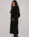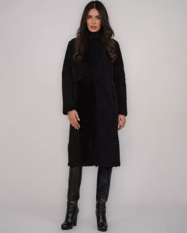 Czarny dwustronny kożuch z oddzielnym paskiem