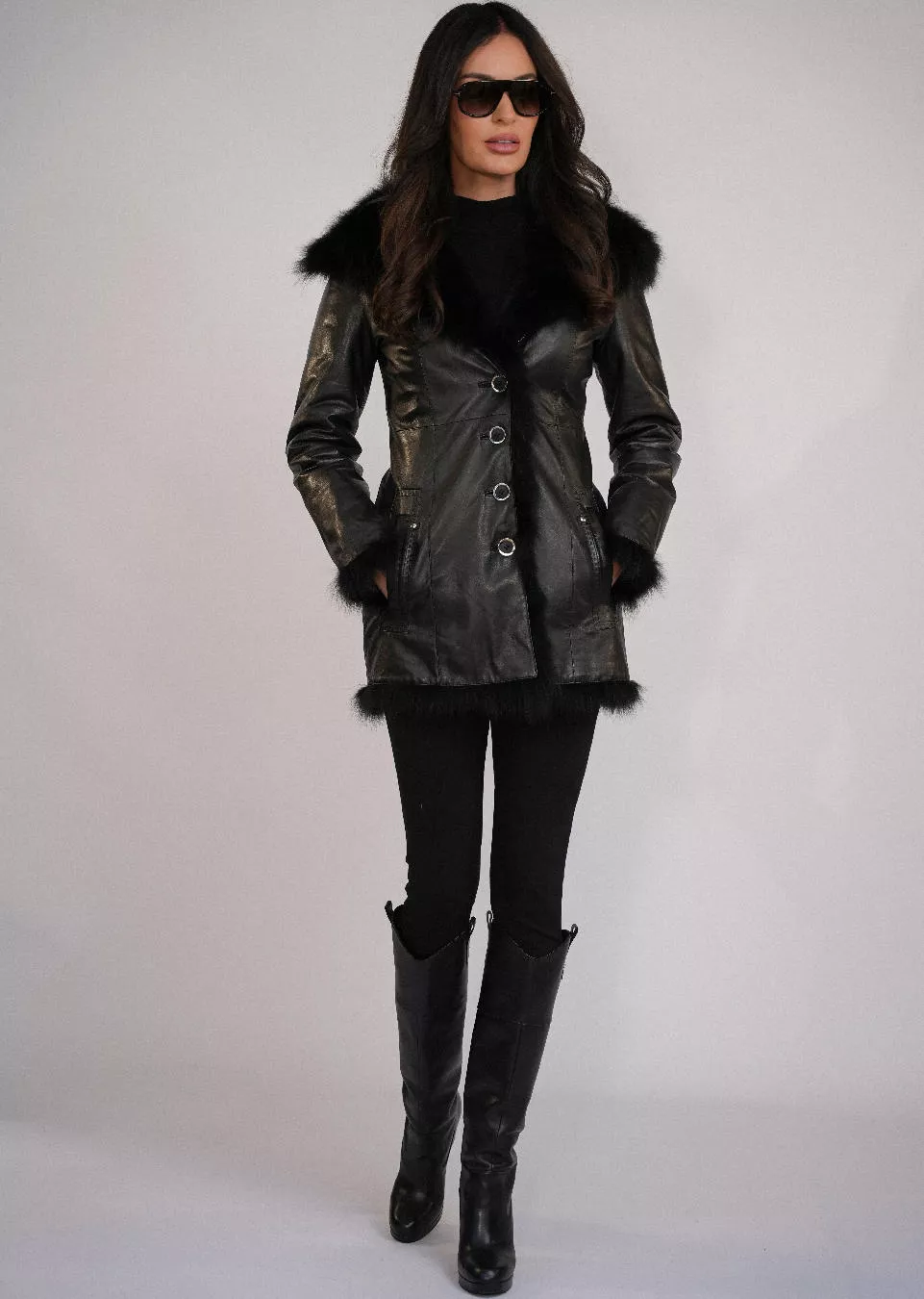 Stylowy, ciepły i luksusowy kożuch, który doskonale sprawdzi się w chłodne dni, podkreślając klasę i kobiecy charakter każdej stylizacji.