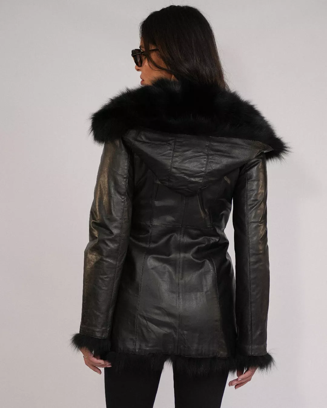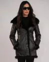 Czarny kożuch z kapturem