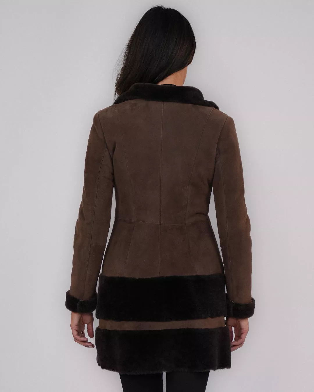 Zamszowy kożuch damski – brązowy