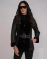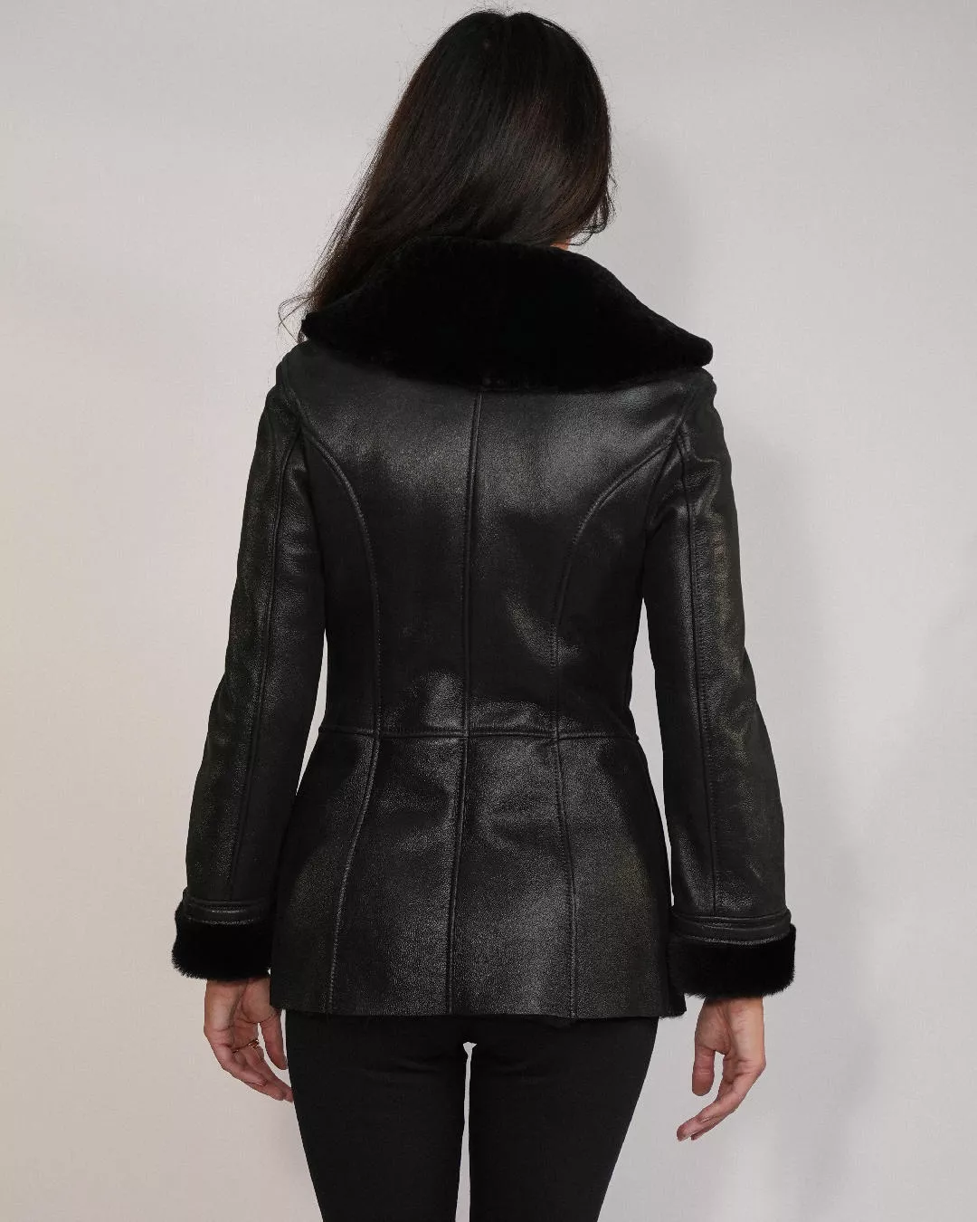 Kożuch damski skórzany z naturalnym futrem – czarny