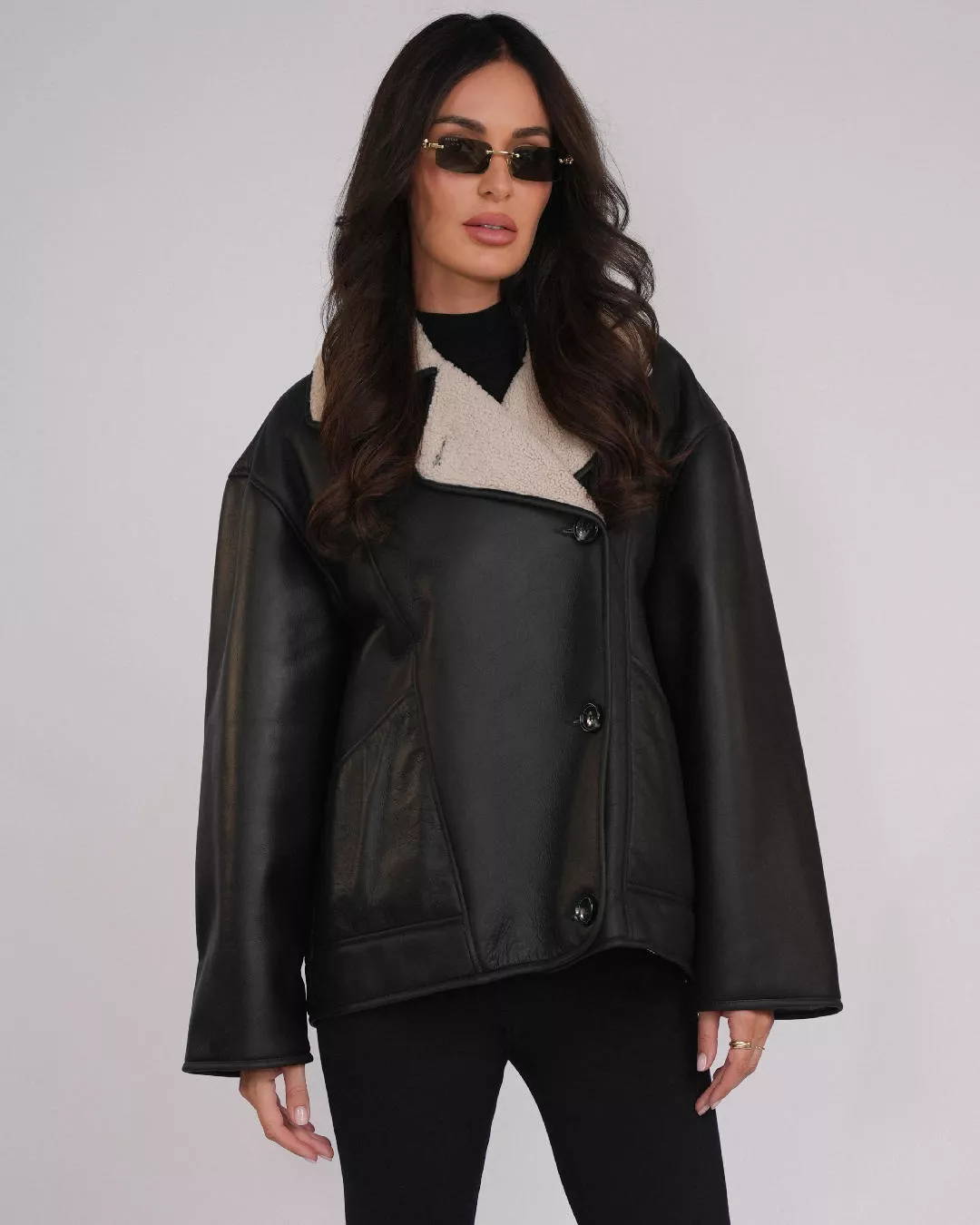 Stylowy i ponadczasowy kożuch wykonany z najwyższej jakości 100% skóry merino, który łączy elegancję z funkcjonalnością. Model w modnym fasonie oversize zapewnia swobodę noszenia i doskonale sprawdzi się zarówno w codziennych, jak i bardziej dopracowanych stylizacjach.