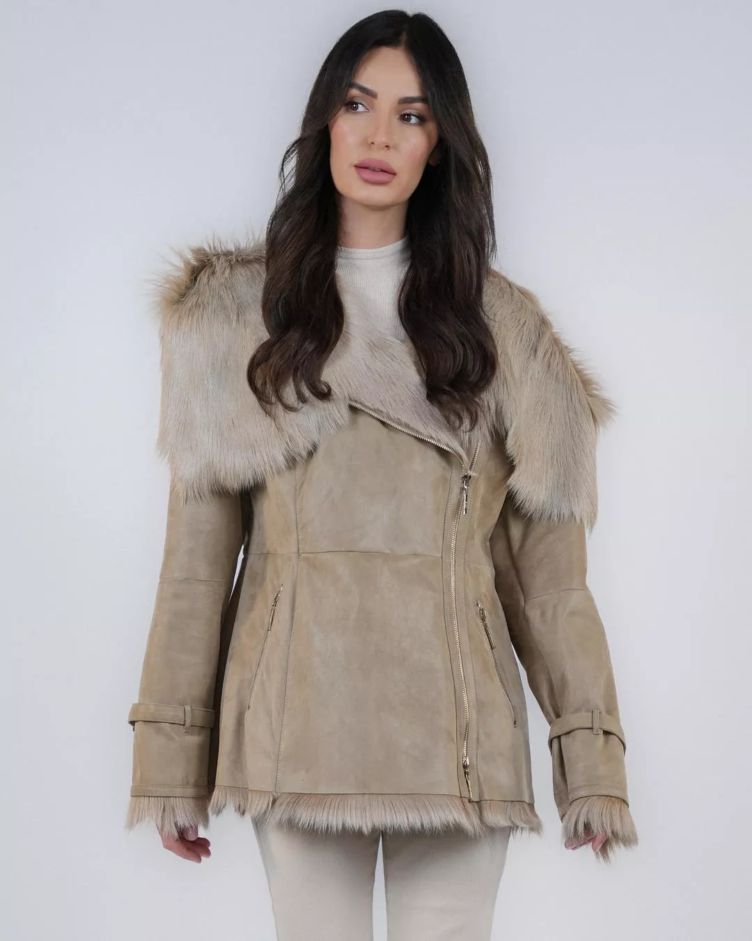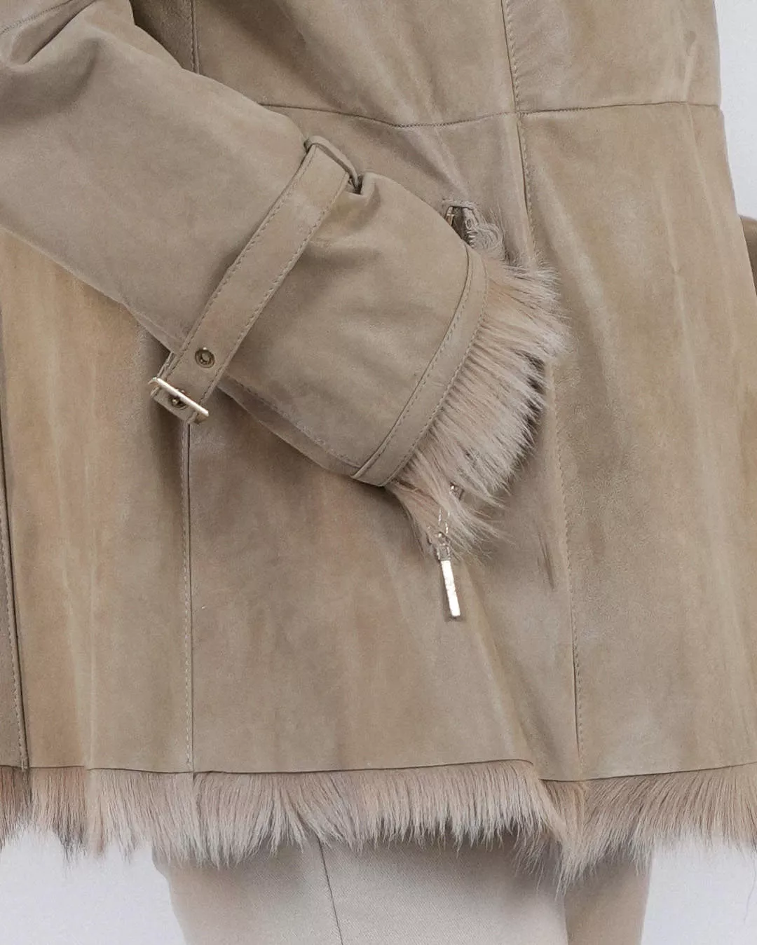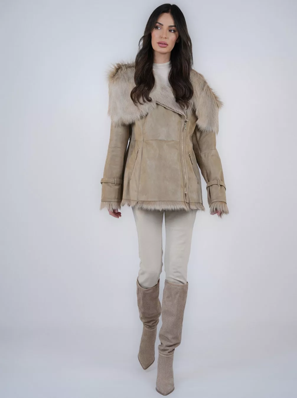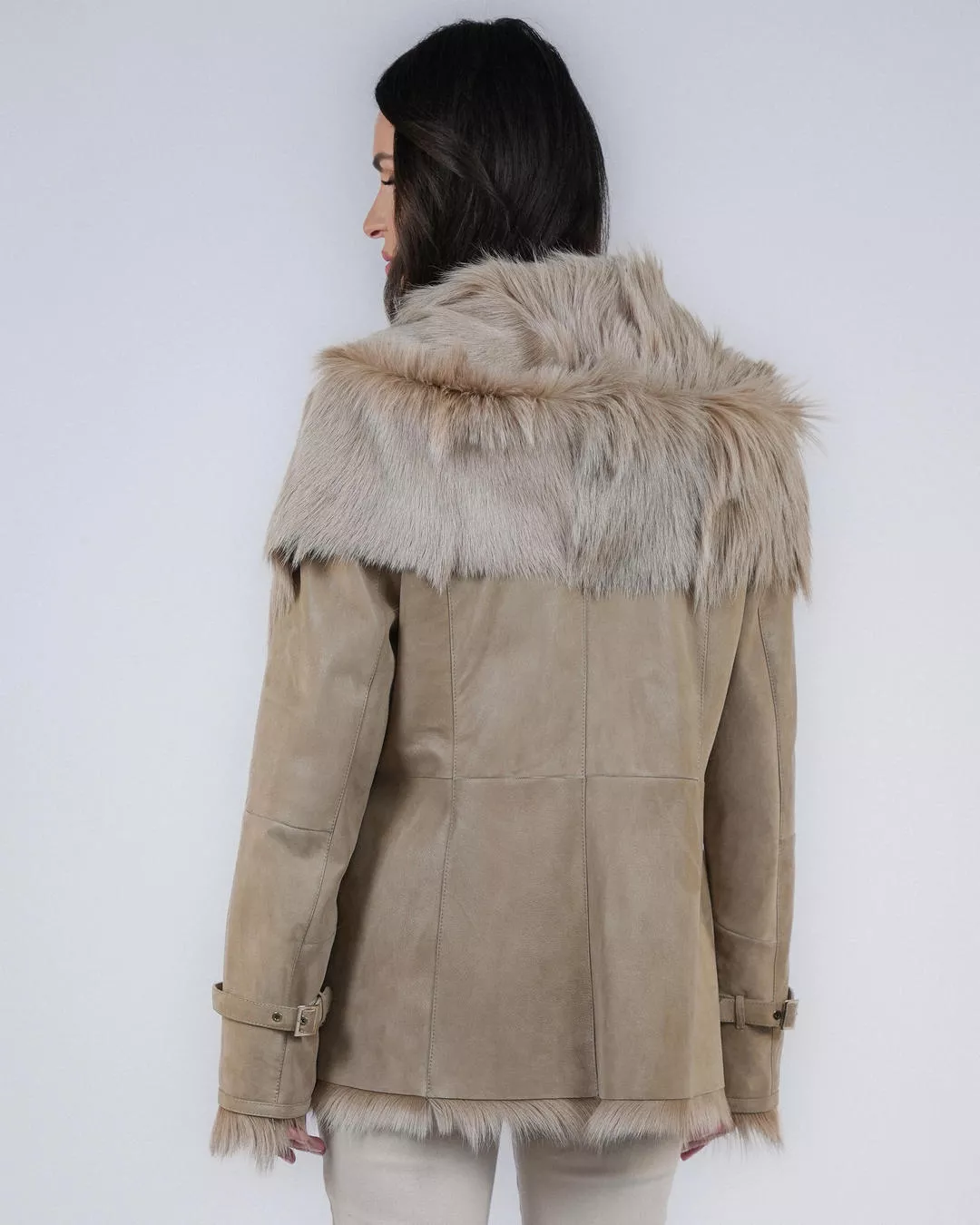 Wyprzedaż | Beżowy kożuch z futra kozy