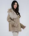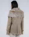 Beżowy kożuch damski ze skóry kozy z kapturem