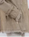 Kożuch zapinany jest na solidny zamek błyskawiczny, co zwiększa wygodę użytkowania. Praktyczne dwie kieszenie zapinane na zamek pozwalają bezpiecznie przechowywać drobiazgi. Ozdobne paski na rękawach nadają całości modowego charakteru i subtelnie podkreślają detale wykończenia. Beżowy kolor sprawia, że model jest ponadczasowy i łatwy do zestawienia z różnymi elementami garderoby.