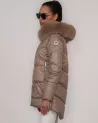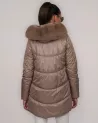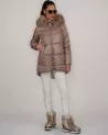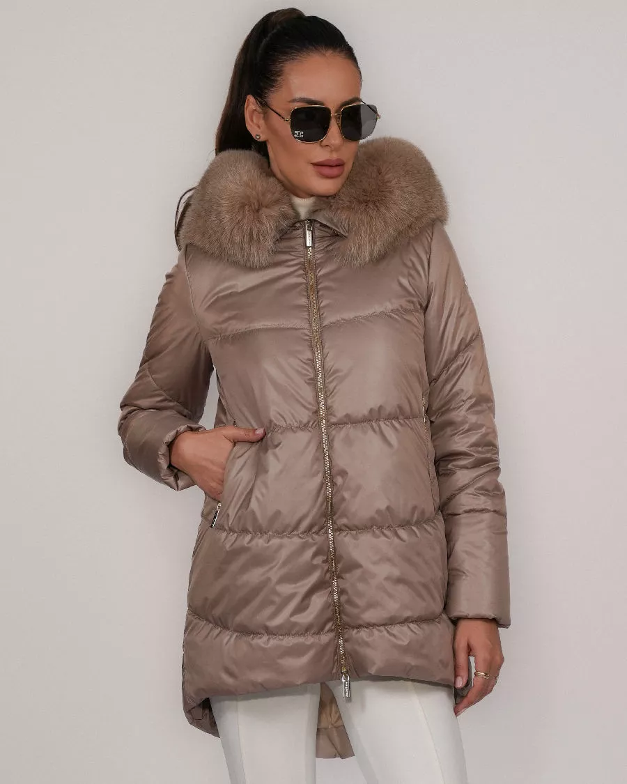 Elegancka, lekka kurtka puchowa w kolorze ponadczasowego beżu — idealna na chłodniejsze dni, łącząca ekskluzywny wygląd z wysoką funkcjonalnością. Model o długości 85 cm wyróżnia się delikatnie wydłużonym tyłem, który zapewnia dodatkową ochronę przed zimnem oraz nadaje całości nowoczesny fason.