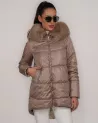 Beżowa ocieplana kurtka puchowa z kapturem