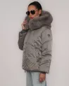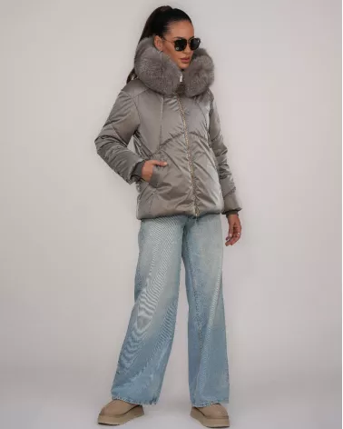 Wodoodporna kurtka puchowa z naturalnym futrem lisa – kolor taupe