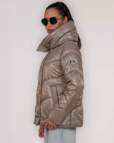 Kurtka puchowa z kapturem – kolor taupe