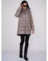 Stylowa i niezwykle praktyczna kurtka puchowa w eleganckim, ponadczasowym kolorze taupe to idealny wybór na chłodne dni. Zapewnia wysoki komfort termiczny, jednocześnie podkreślając kobiecy charakter stylizacji.