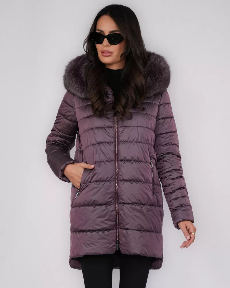 Kurtka świetnie sprawdzi się zarówno na co dzień, jak i podczas zimowych wyjazdów. Nowoczesny materiał z właściwościami hydrofobowymi skutecznie zabezpiecza przed chłodem i wiatrem, a eko puch zapewnia komfort nawet w niskich temperaturach. Elegancki odcień fioletu i luksusowe futro nadają całości ponadczasowego charakteru. Idealna propozycja dla kobiet, które cenią styl, wygodę i najwyższą jakość wykonania.