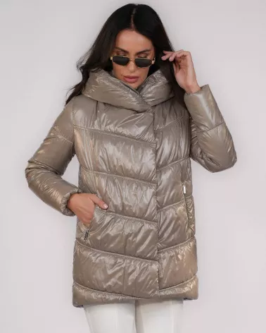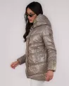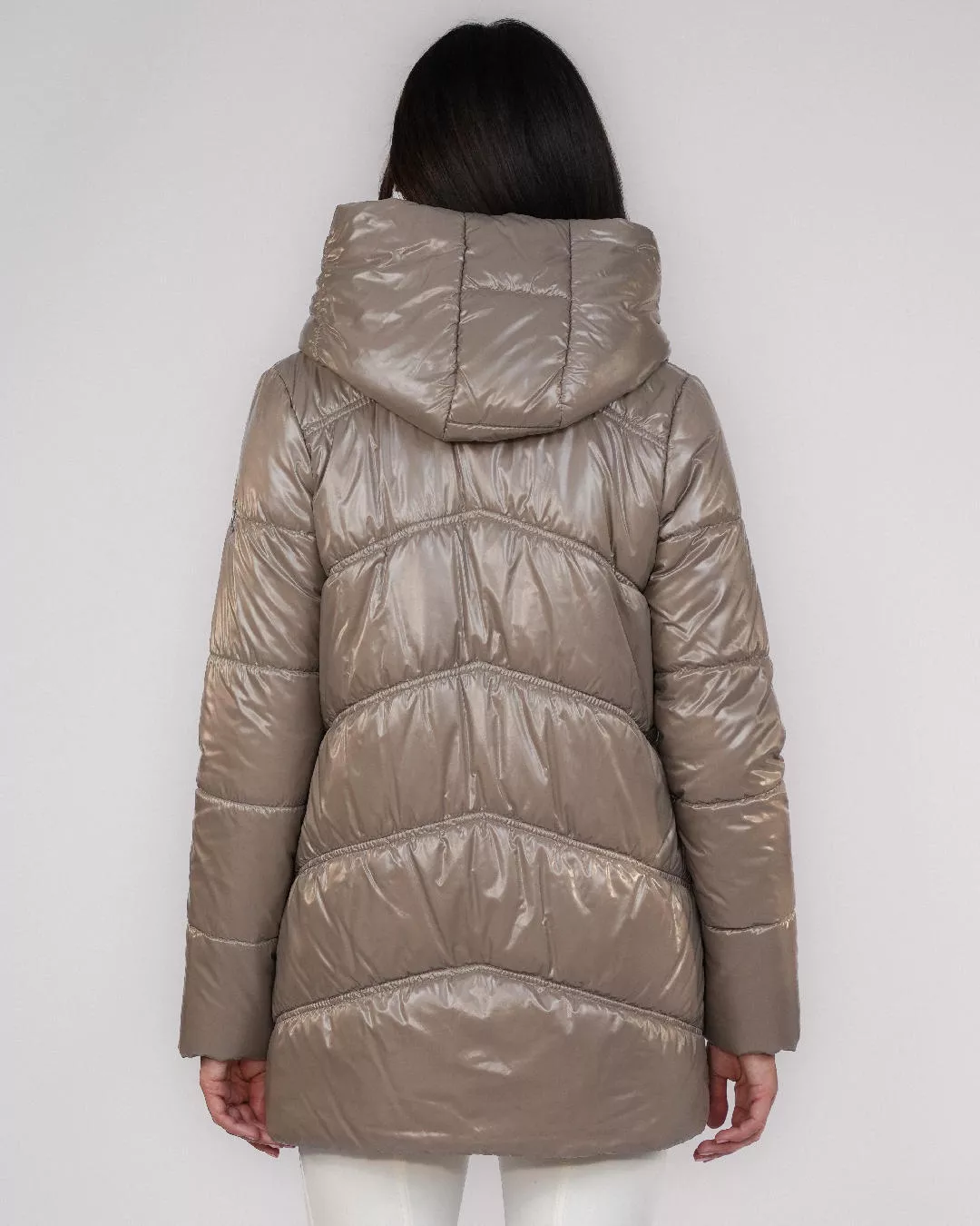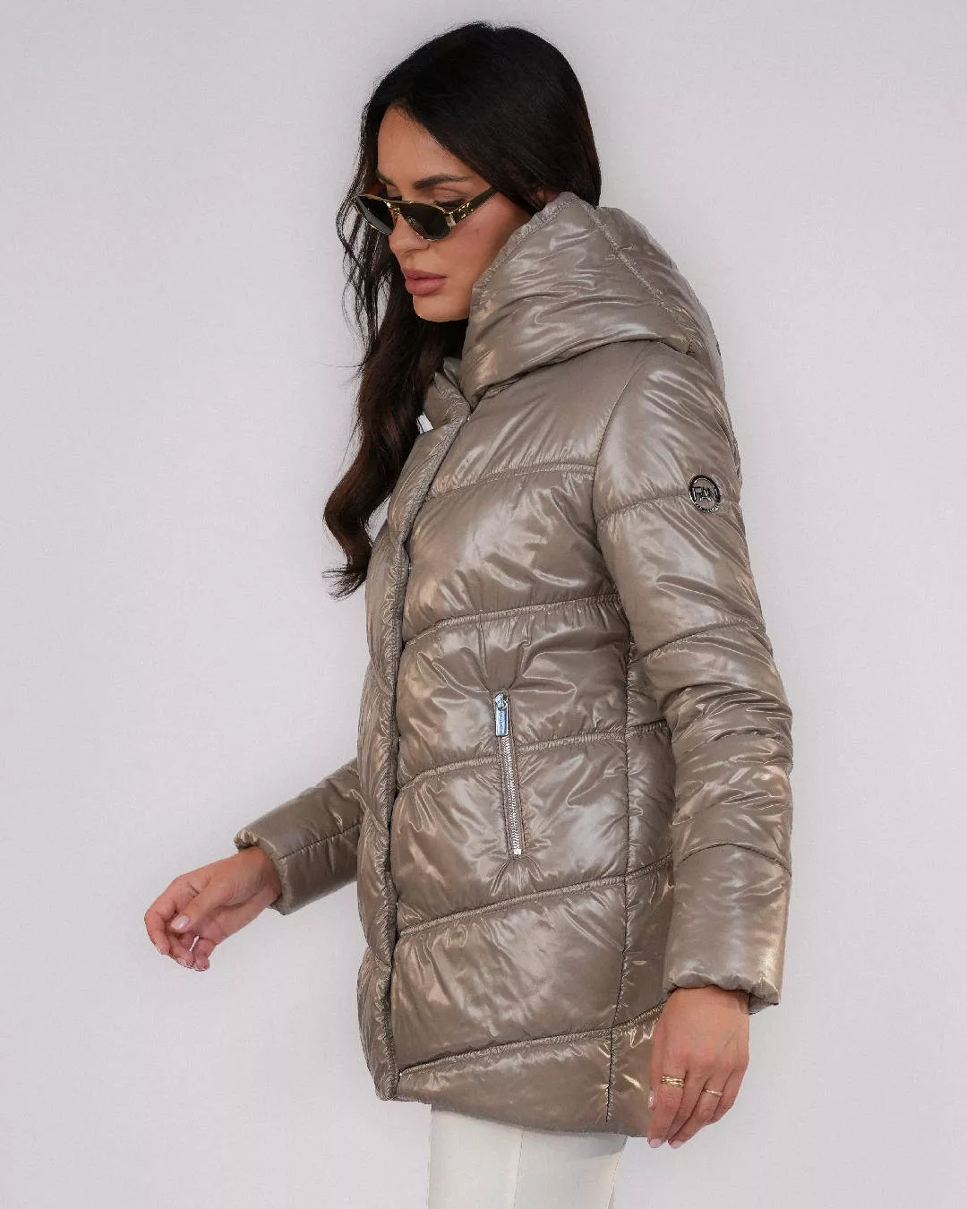 Stylowa i funkcjonalna kurtka puchowa w kolorze taupe, stworzona z myślą o najwyższym komforcie termicznym w chłodne dni. Wykonana z hydrofobowego nylonu (100%), zapewnia skuteczną ochronę przed wilgocią, a jej lekko połyskujące wykończenie nadaje całości nowoczesny, elegancki charakter.
