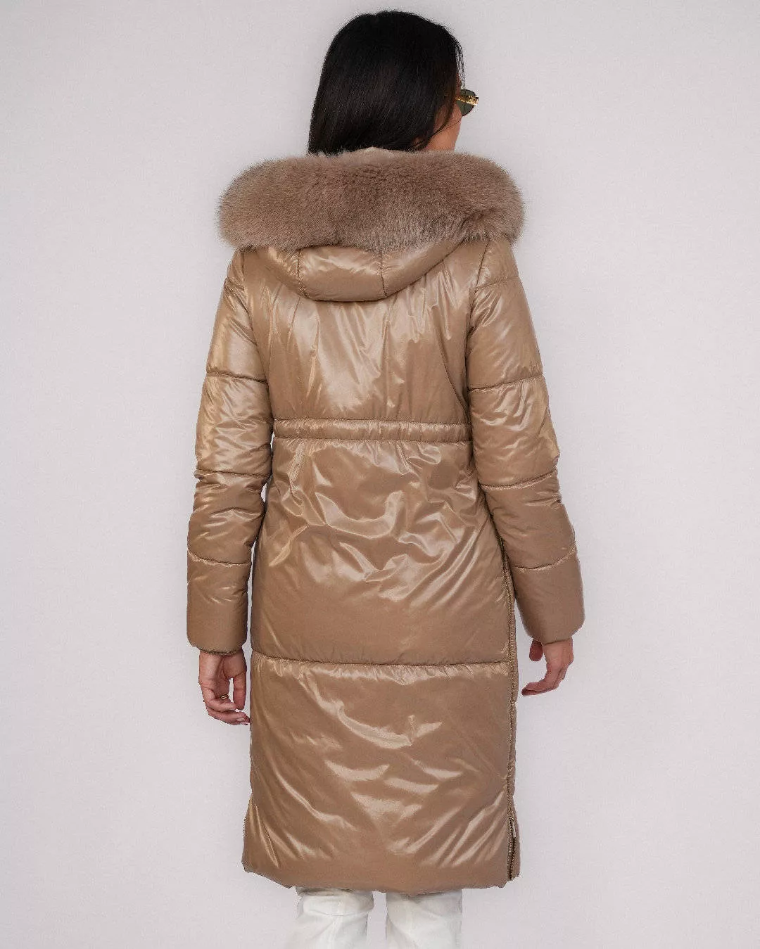 To kurtka, która łączy luksusowy wygląd z praktycznymi rozwiązaniami. Naturalne futro, szlachetny odcień camel oraz dopracowane detale sprawiają, że prezentuje się wyjątkowo elegancko, a jednocześnie zapewnia doskonały komfort cieplny podczas zimowych dni.