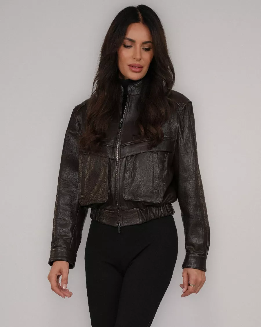 Stylowa i ponadczasowa kurtka wykonana w 100% z miękkiej skóry jagnięcej to idealny wybór dla kobiet ceniących jakość i elegancki luz. Model w kolorze głębokiego brązu wyróżnia się nowoczesnym, lekko luźnym fasonem, który doskonale dopasowuje się do sylwetki.