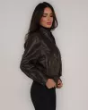 Kurtka posiada stójkę nadającą całości subtelnie sportowego charakteru oraz zapięcie na zamek błyskawiczny, które zapewnia wygodę noszenia. Z przodu umieszczono dwie pojemne kieszenie z klapami, idealne na drobiazgi. Dół kurtki zakończony jest ściągaczem w pasie, co podkreśla talię i dodaje całości kobiecego kształtu. Mankiety zapinane na zatrzaski pozwalają na regulację obwodu rękawa i nadają kurtce wykończenie premium.