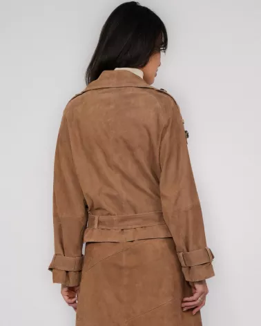Kurtka zamszowa z oddzielnym paskiem w kolorze tobacco