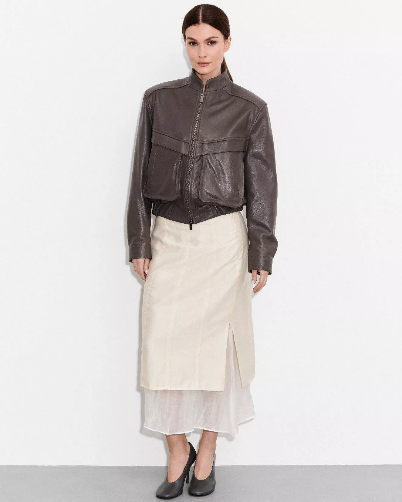 Kurtka skórzana w kolorze taupe