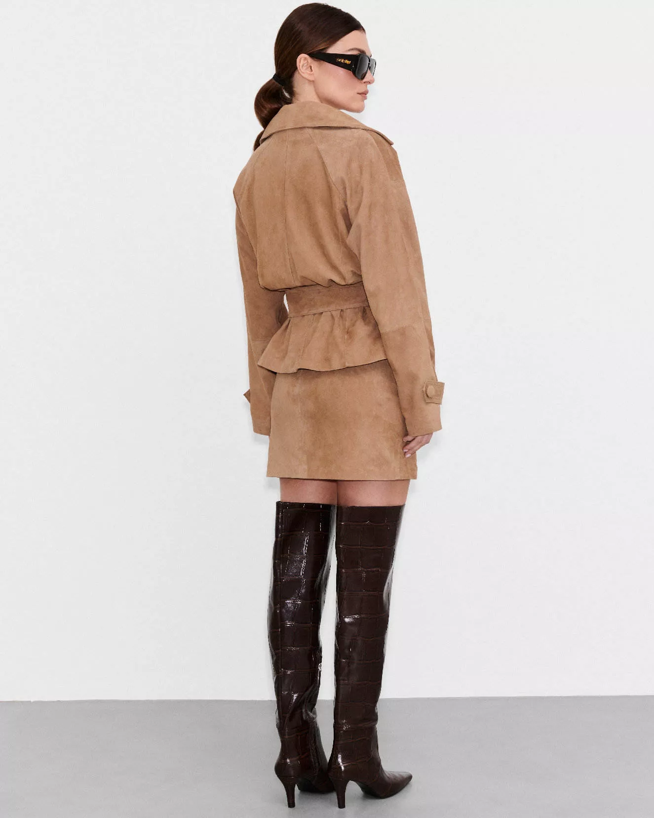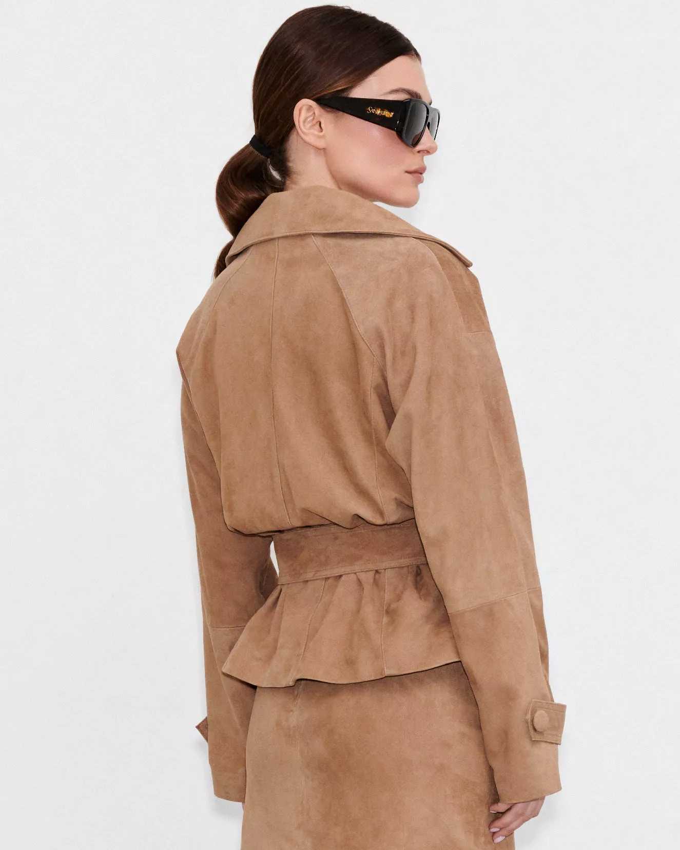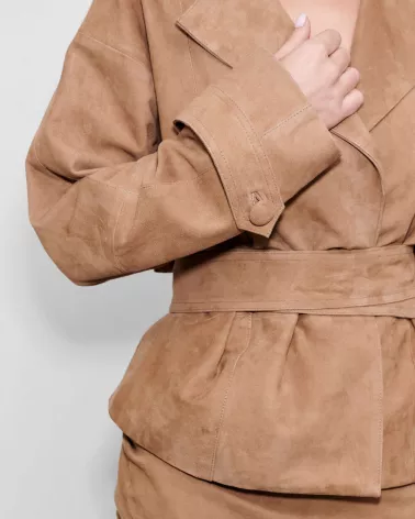 Kurtka zamszowa w kolorze tobacco z oddzielnym paskiem