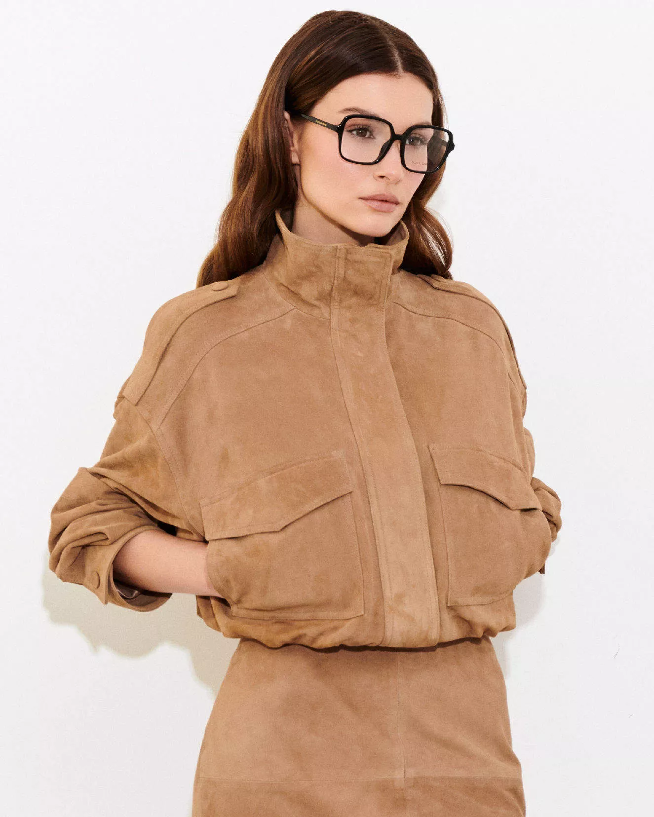 Stylowa kurtka wykonana z najwyższej jakości zamszu w eleganckim odcieniu tobacco to idealne połączenie klasyki i współczesnego designu. Jej krótki, lekko oversize’owy fason świetnie podkreśla sylwetkę, a dopracowane detale nadają całości wyrafinowanego charakteru.